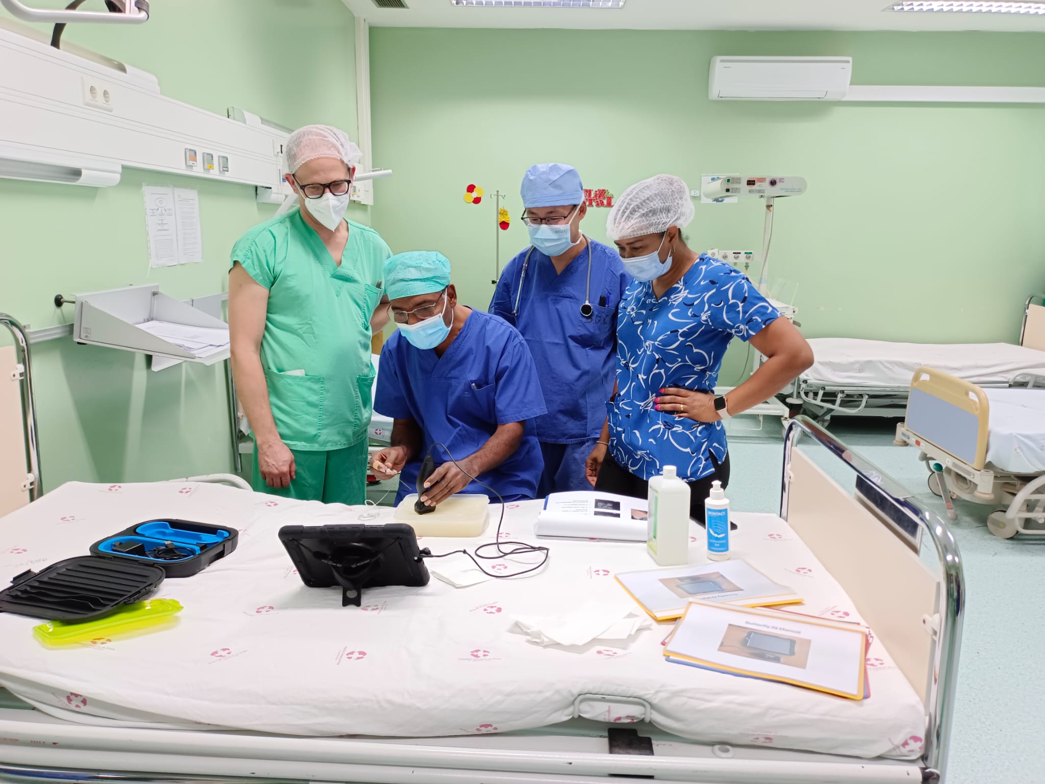 Die großzügige finanzielle Unterstützung des österreichischen Botschafters in Portugal machte es uns möglich, zwei robuste, kompakte Ultraschallgeräte anzuschaffen. Eines davon übergaben wir im Rahmen unseres Besuchs an die Abteilung für Anästhesie. Da uns bei dieser Reise unser Kollege Dr. Ulrich Thaler begleitete, der fundiertes Wissen im Bereich „Ultraschallgestützte Regionalanästhesie“ mitbringt, wurde die Übergabe des Ultraschallgeräts von einer mehrtägigen praktischen Einschulung durch Dr. Thaler begleitet. Mit Hilfe der Sonografie kann nun örtliche Betäubung bei operativen Eingriffen an Arm und Bein auf sichere und kostengünstige Art durchgeführt werden.