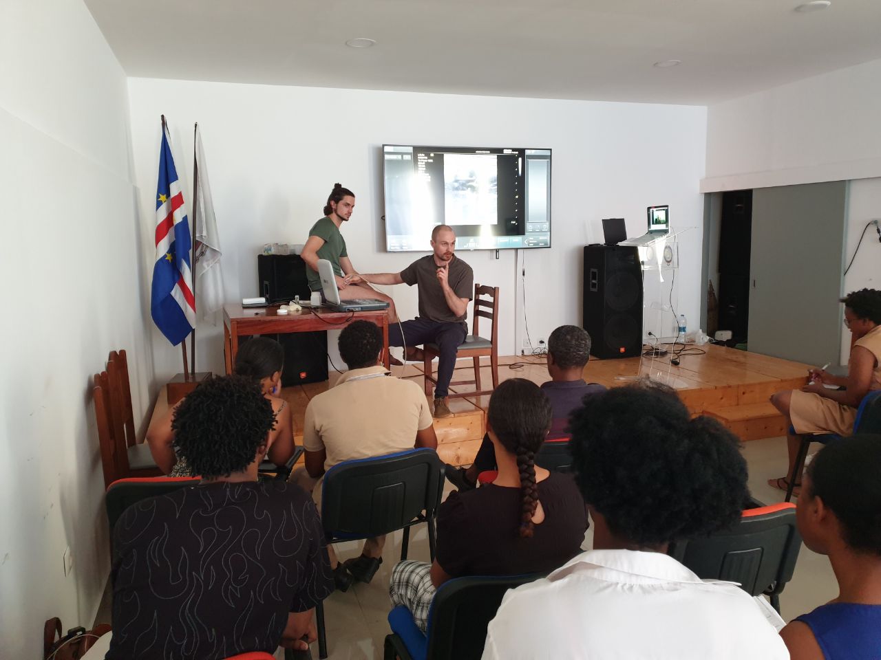 Anfang Februar begeben sich Dr. Lorenz Baldauf (Allgemeinmedizin), Dr. Clemens Reifeltshammer (Dermatologie) und Dr. Philipp Rösslhuemer (Radiologie) auf die Reise nach Praia. Neben der Besichtigung des Universitätskrankenhauses Agostinho Neto findet ein dreistündiger Ultraschallkurs mit den Schwerpunkten eFAST (extended focussed assessment with sonography in trauma) und Kompressionssonographie der tiefen Beinvenen zum Thromboseausschluss statt. Die Organisatorin Dr. Valeria Semedo hob in ihrer Begrüßungsansprache die Wichtigkeit des Ultraschalls zur Diagnosefindung, insbesondere im Rahmen eines Inselstaats mit begrenzten Ressourcen, hervor. Neben den kapverdianischen Kollegen folgte auch eine Gruppe engagierter Medizinstudenten des Abschlussjahrgangs den Vorträgen, welche zusätzlich online auf die anderen Inseln übertragen wurden. Im Anschluss wurden die neuen Erkenntnisse praktisch angewendet. Unseren besonderen Dank möchten wir Dr. Valeria Semedo für die Veranstaltungsorganisation, Dr. Romina Rodrigues sowie Dr. Susan Lan für die Führung durch die Intensivstation und Dr. Wilson Almeida für die Besichtigung der Radiologie aussprechen.